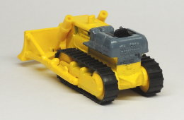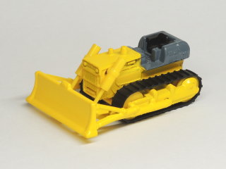 コマツ ブルドーザー D65A(中国製) 「コマツ ブルドーザー D65A」(No.70)の中国製のトミカ(No.70-1)です。 このトミカは中国製となっていて、「小松 D65A レーキドーザ」(No.70-2)のトミカが何らかの理由により短期間のみで販売終了となったために、1977年12月から2004年5月まで再販されたNo.70-1のモデルになります。 1972年11月に発売された当初のトミカと比較すると、車体色が黄色とグレーに、クローラ(無限軌道)部分のゴムは黒色となっていて、ボディ上部にある煙突部分がボディと一体成型になっています。