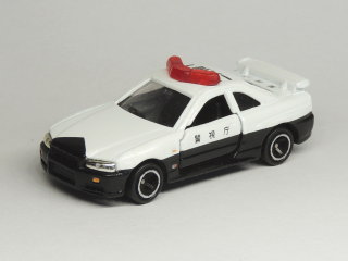 | 日産 スカイライン GT-R BCNR33 パトロールカー 2007年(平成19年)10月18日に発売された「トミカ SKYLINE(スカイライン)誕生50周年記念 後期」(全6種/記念ステッカー付)のうちの1台となっていた「日産 スカイライン GT-R BCNR33 パトロールカー」(SKYLINE GT-R PATROL CAR/BCNR33)のトミカ(中国製/No.20-7)です。 9代目「スカイライン」(1993年~1998年)の「R33型」がベースとなっています。