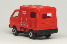 スズキ キャリィ(郵便車/日本製) 1980年1月に発売された「スズキ キャリィ」(No.31)の郵便車のトミカ(日本製/No.31-2)です。 車体後部の荷台側面には「〒 郵便 心のふれあい 手紙を出そう」と書かれています。