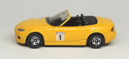 | マツダ ロードスター(3代目) 2010年7月に発売された「スーパーオートトミカビルであそぼう!ドライブカーセット」(トミカ6台&プラキッズ4体付)に入っている「マツダ ロードスター」(3代目/NC系)のトミカ(ベトナム製/No.115-3)です。 車体色は黄色系で、車体には「TOMICA 1」と書かれています。