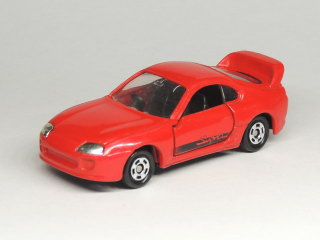 トヨタ スープラ(赤) 1994年(平成6年)10月に新発売された「トヨタ スープラ」(No.33/赤色)のトミカ(No.33-6-17/中国製)です。 この「スープラ」のトミカの発売当初のボディカラーはシルバーだったようですが、途中から写真のように「新色」として赤色に変更となったようです。 また、写真のトミカは、フロントグリル部分に黒く塗られた部分があるのが特徴です。 「スープラ」の1986年(昭和61年)から2002年(平成14年)までの累計生産台数は28万5,280台なのだそうで、「SUPER GT」、「ル・マン24時間レース」などの各種レースに参戦・使用され、かつて全盛期には公道でよく見かけたものでした。