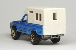 | ハイラックス キャンピングカー 1988年12月に発売された「ハイラックス キャンピングカー」(No.108)のトミカ(日本製/No.108-2)です。 1978年9月から1983年11月(廉価版は1988年9月)まで販売された3代目「ハイラックス」(30/40系)がモデルの、キャンピングカー仕様のトミカとなっています。 車体色はメタリックブルー系、後部の居住スペースであるキャビンは白色系となっています。
