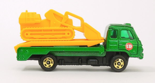 このトミカは、当時の日産ディーゼル工業株式会社(UD/2010年2月1日からはUDトラックス株式会社)の、中型及び小型トラックである初代「UDコンドル」(1975年5月~1983年5月)がベースの、ブルドーザキャリア(重機運搬車)がモデルとなっています。